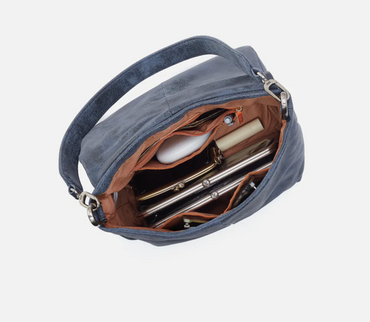 Harley Convertible Shoulder Bag in Buffed Leather Indigo Sky