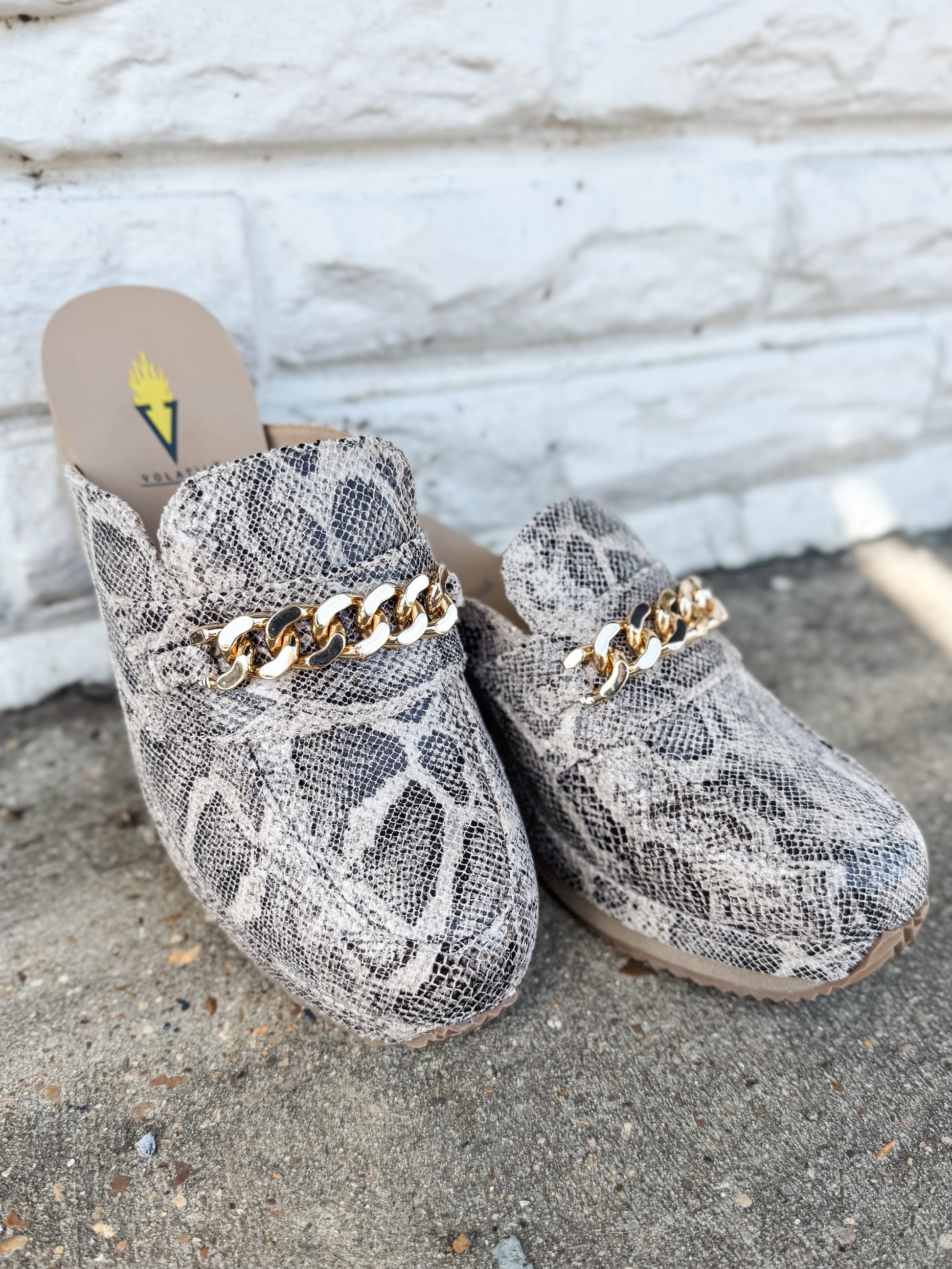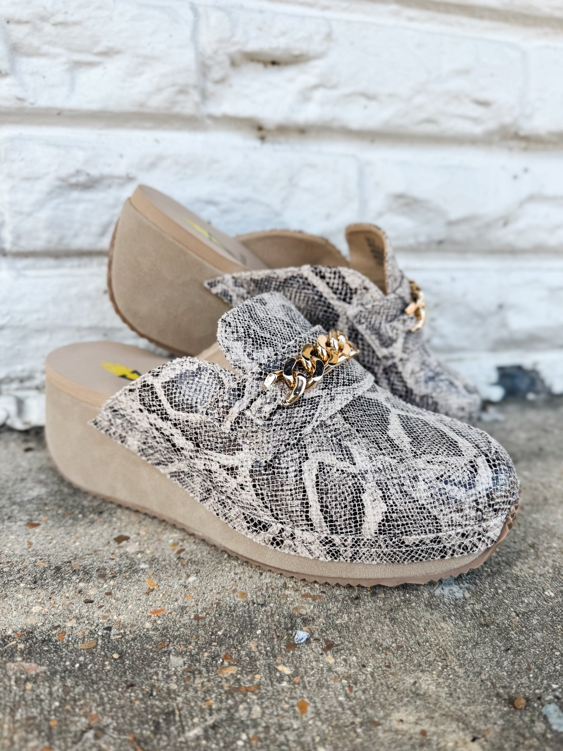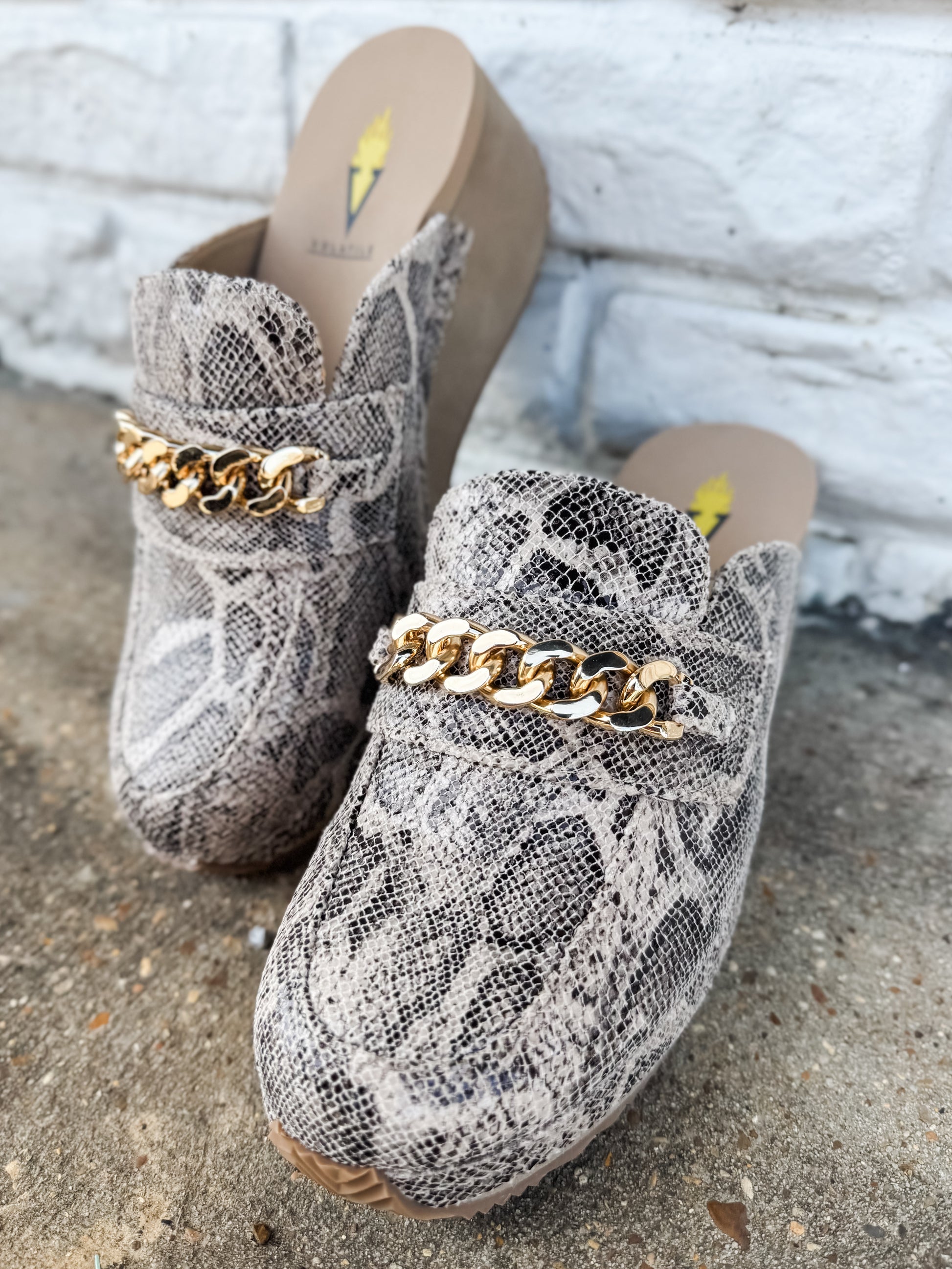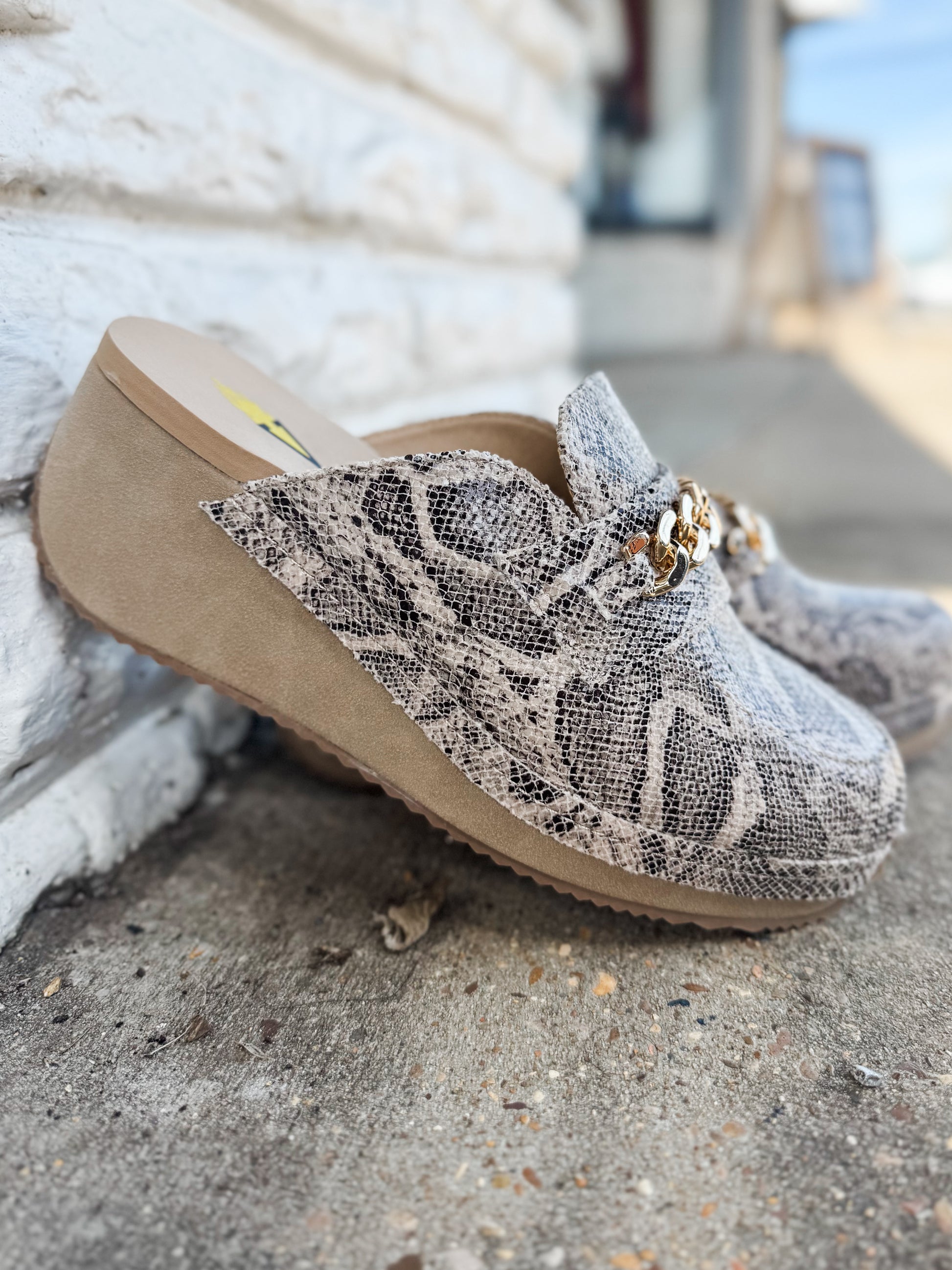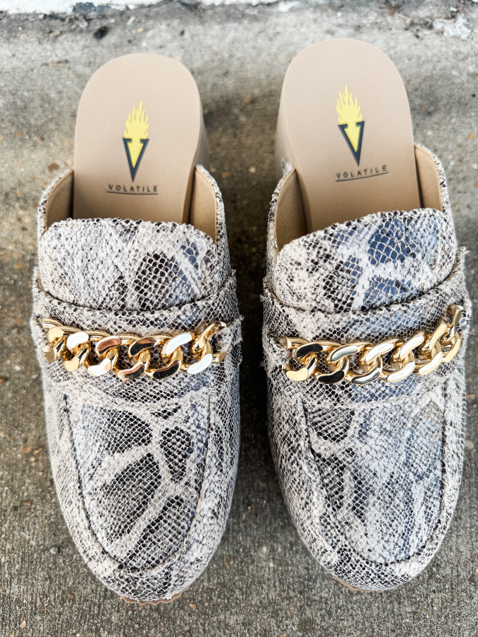Bold and effortless, the Volatile Brighton mule is your go to for standout everyday style. Featuring a luxe textured upper with gold-tone chain detail, this slip-on loafer inspired silhouette brings a polished edge to your look. Featuring a cushioned insole and supportive platform, it's where elevated fashion meets signature comfort.
