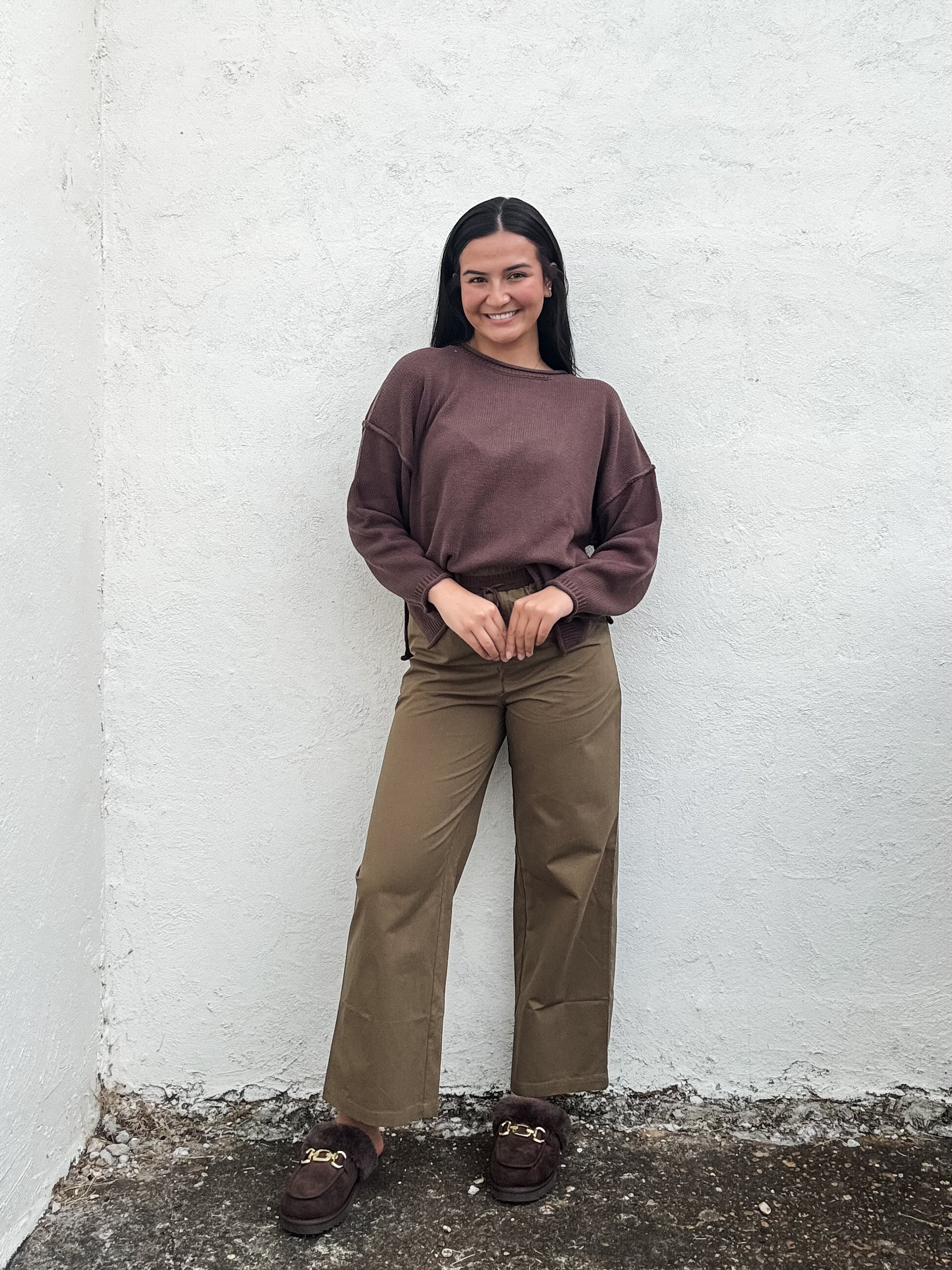 Embrace cozy style with the Brownie Sweater, featuring raw edges on the sleeves, neck, and shoulders for a relaxed, effortlessly chic look. The drop shoulder design adds a modern touch while ensuring a comfortable, laid-back fit perfect for everyday wear. Elevate your wardrobe with this versatile brown sweater that combines comfort and trend in one easy-to-wear piece.
