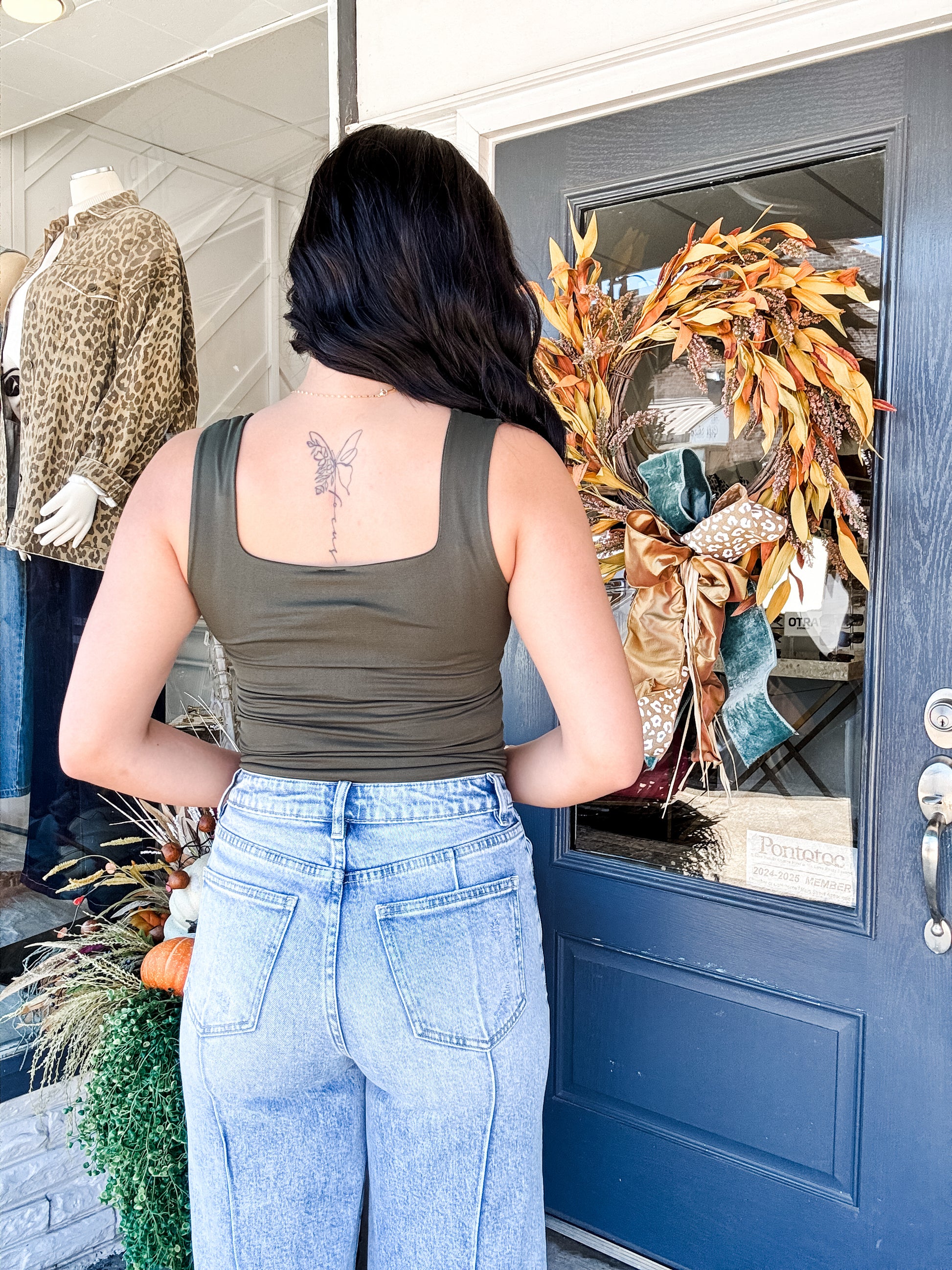 Designed with a modern square neckline, this sleek and minimal top creates a flattering, clean silhouette. The soft stretch fabric provides a smooth fit that's comfortable enough for daily wear yet refined enough for dressed-up occasions. Style it with denim, skirts, or tailored pants-the versatility makes it a must-have wardrobe essential.