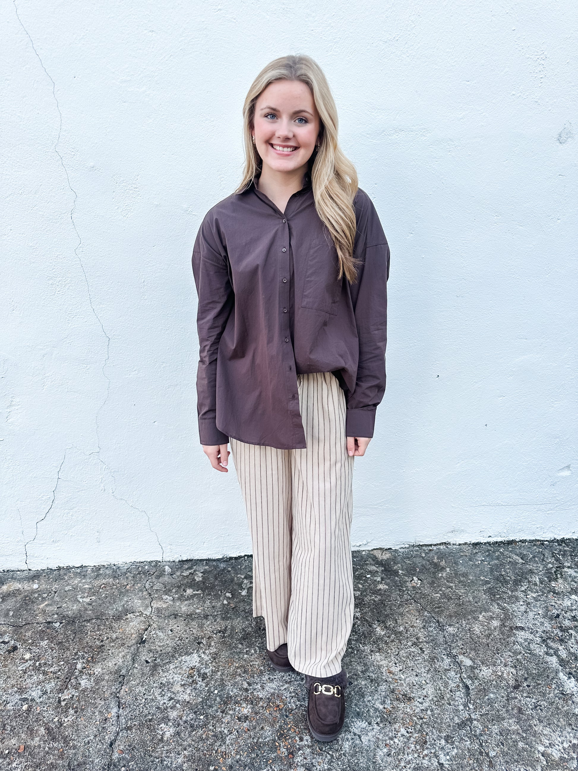 Experience cozy comfort with the Coffee and Cocoa Shirt, crafted from 100% cotton for breathable softness. Its oversized, long-sleeve design offers a relaxed fit perfect for layering or casual wear. The classic button-up style adds versatility, making this shirt an effortless staple for your wardrobe. Embrace warmth and style in one timeless piece.