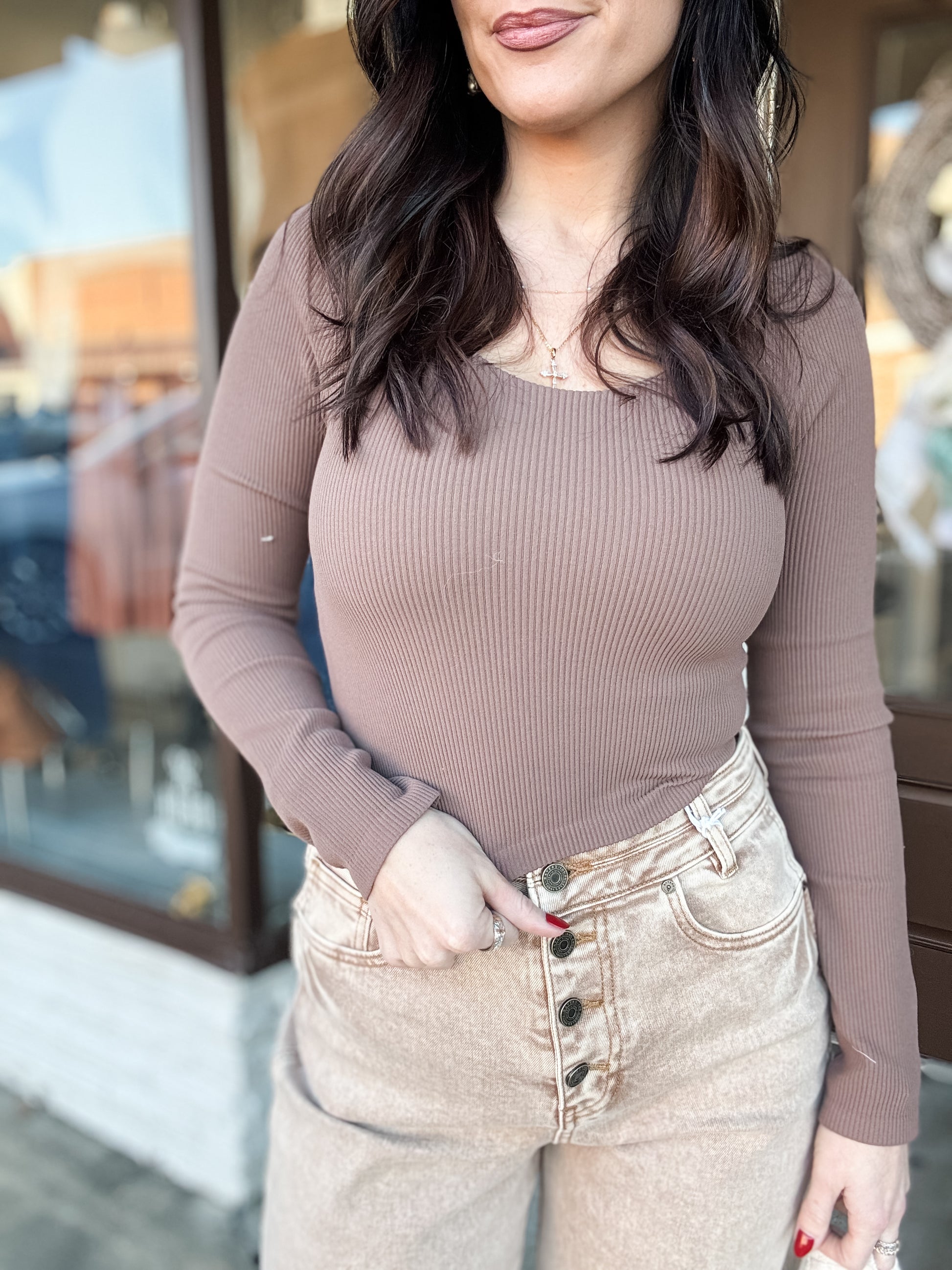 Elevate your style with the Coffee Time Top—a daring chocolate ribbed fitted design that hugs your curves flawlessly. Featuring long sleeves for a sleek, confident look, this top pairs perfectly with everything from jeans to skirts, making it a bold staple for any wardrobe. Embrace the rich, warm tone and striking fit that commands attention wherever you go.