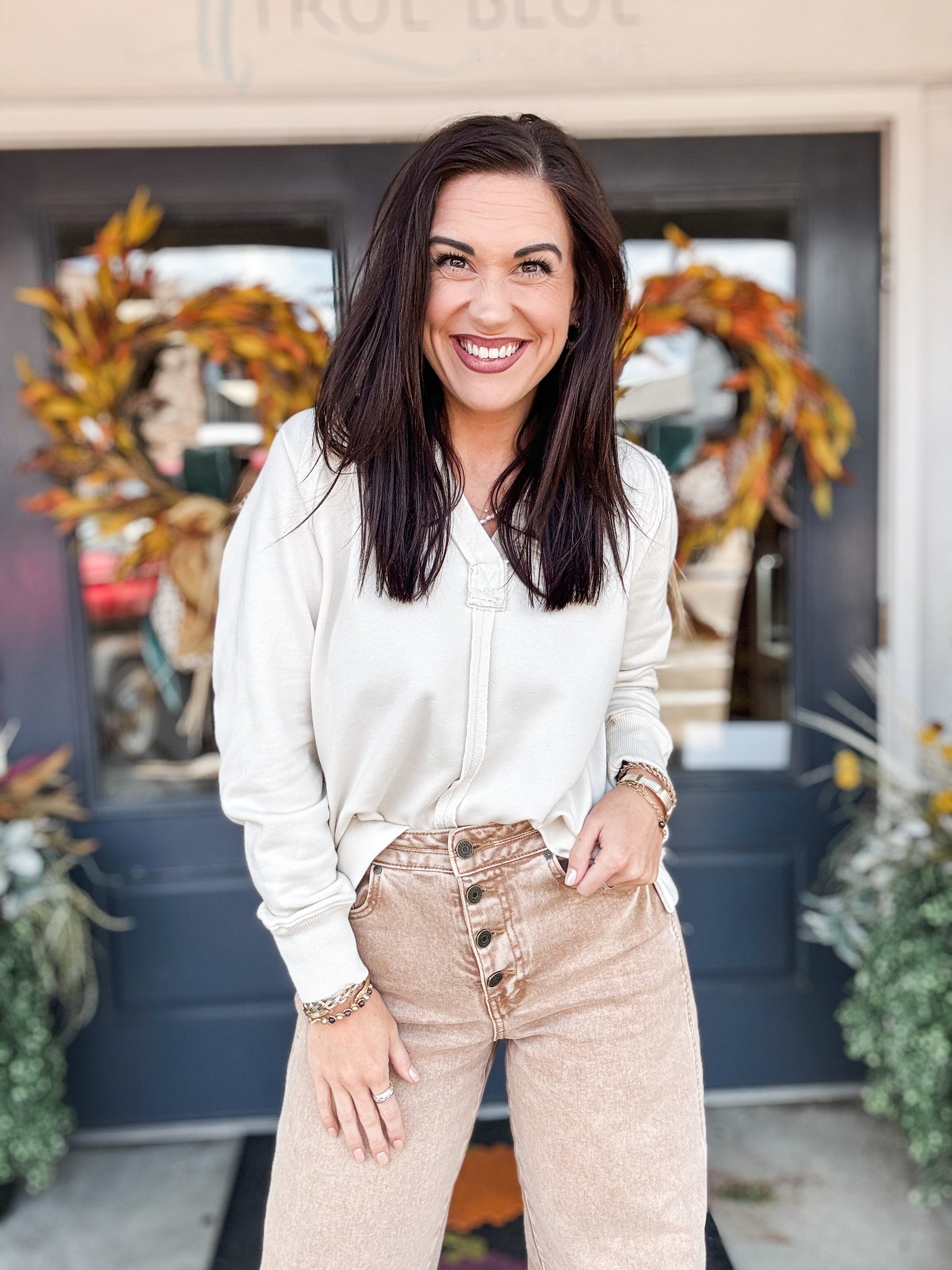 Elevate your casual wardrobe with the Cream Delight Sweatshirt. This hooded, v-neck sweatshirt features raw edge detailing and long sleeves for a relaxed yet stylish look. Its soft cream fabric offers cozy comfort while the unique design adds a modern twist to your everyday essentials. Perfect for layering or wearing on its own, this sweatshirt combines warmth and effortless style.