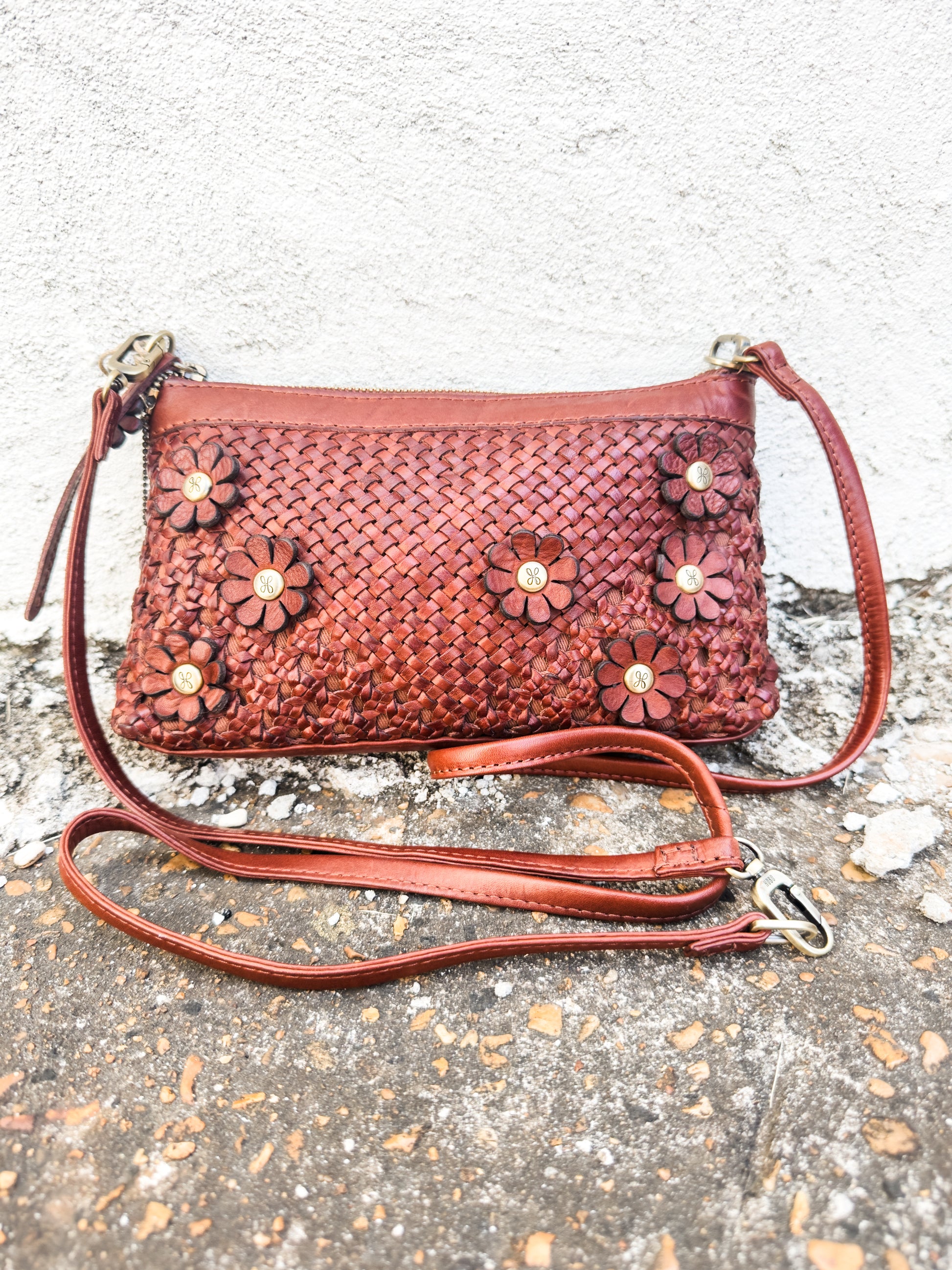 Upgrade your style game with the Darcy Crossbody Chestnut! Crafted from 100% genuine leather in a rich chestnut color, this versatile bag easily converts to a wristlet, shoulder or crossbody. With beautiful flower details and a convenient zip closure, it also features a full size back pocket and card holders inside. Elevate your everyday look now!