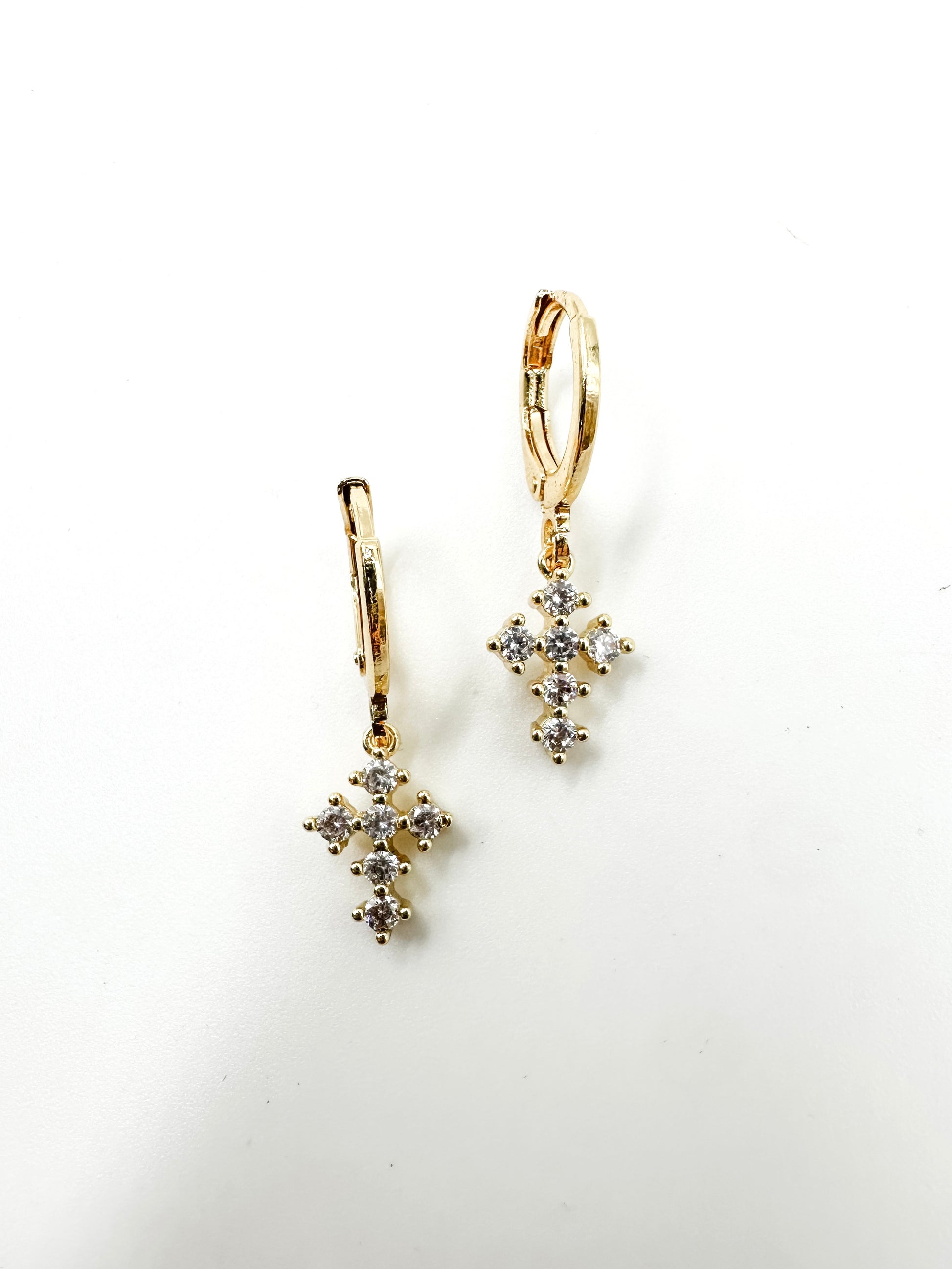 Elevate your everyday style with the Erin Cross Huggies. Crafted in gleaming gold, these delicate earrings feature sparkling CZ stones that catch the light beautifully. Their compact huggie design ensures a comfortable, secure fit, making them perfect for both casual wear and special occasions. Add a touch of refined elegance to your jewelry collection with these timeless cross earrings.