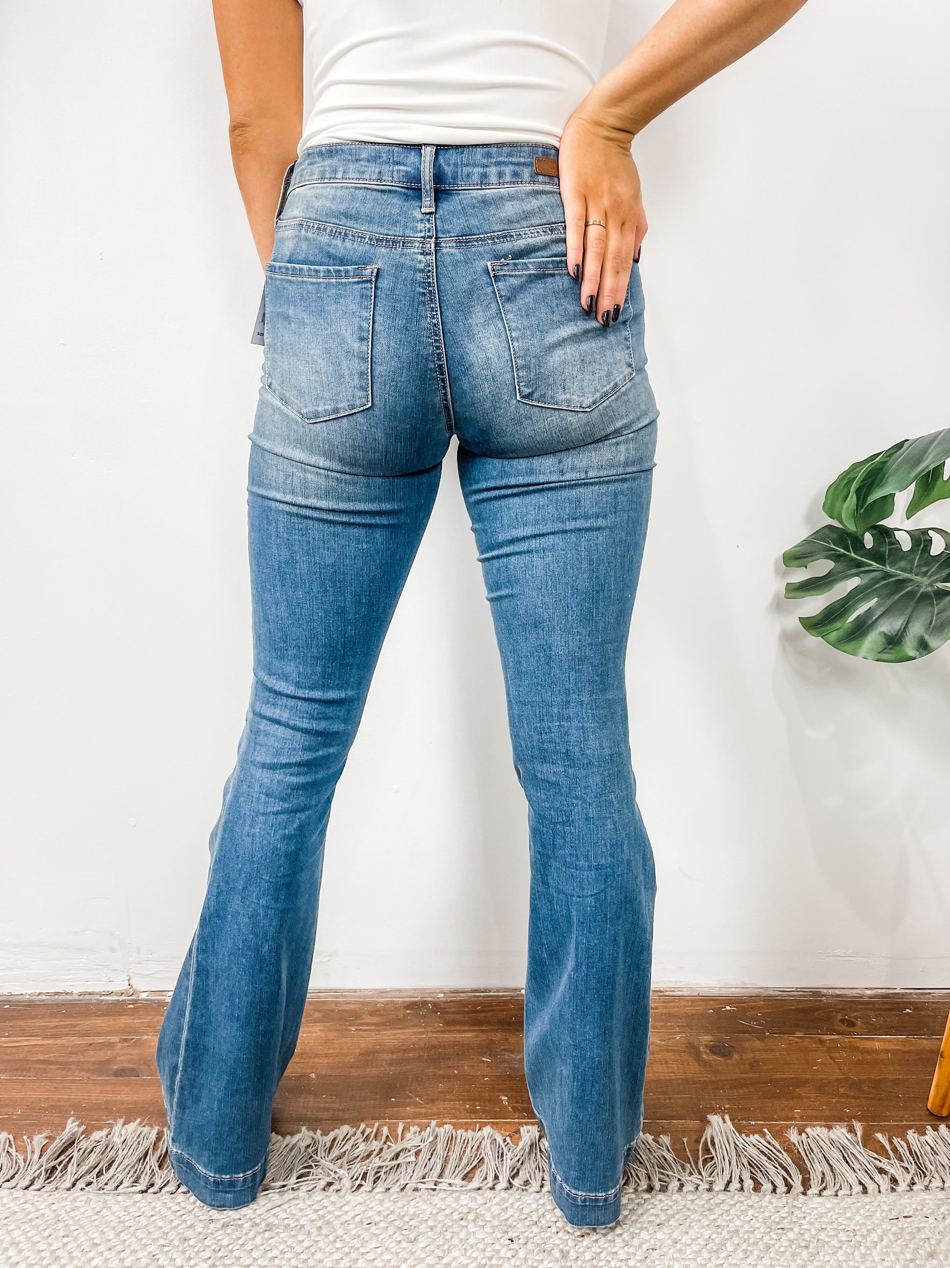 FAITH NORTH WATER FLARE Our classic mid rise flare with 23" leg opening, 33" inseam and 8 1/2" rise