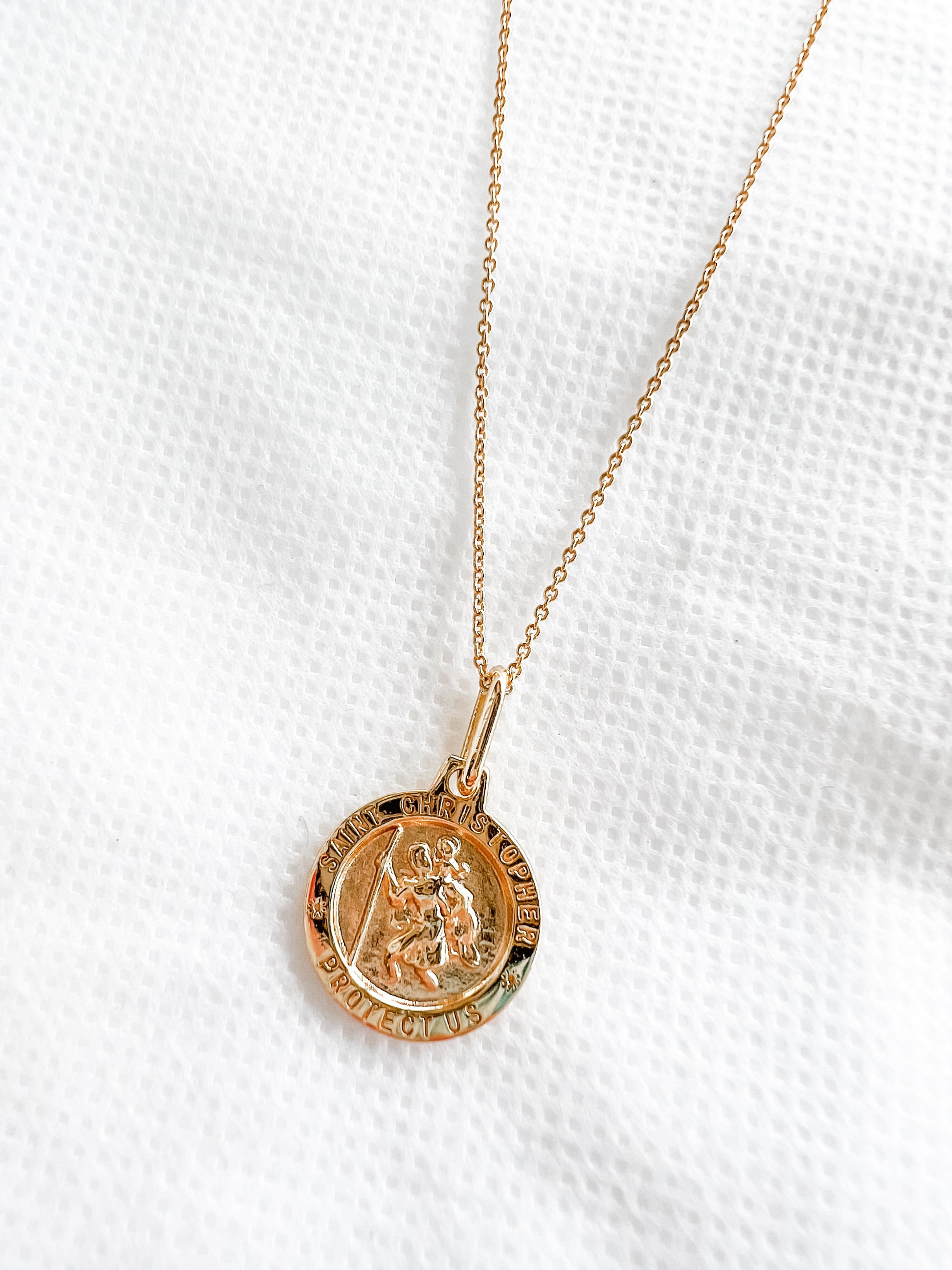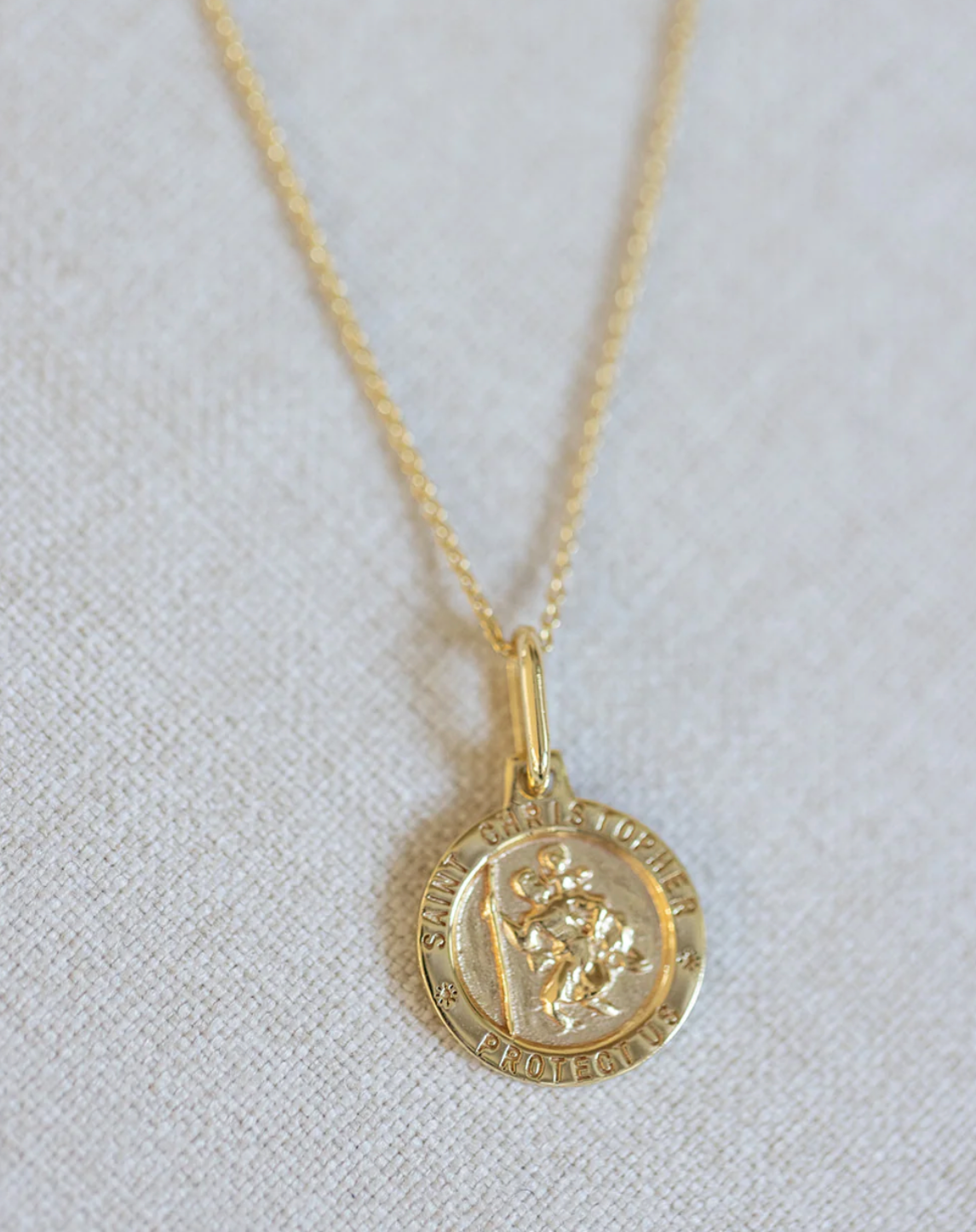 The protection and guidance of Saint Christopher, the patron saint of travelers, in our 14k gold vermeil necklace, beautifully made to accompany you to all of your favorite destinations.