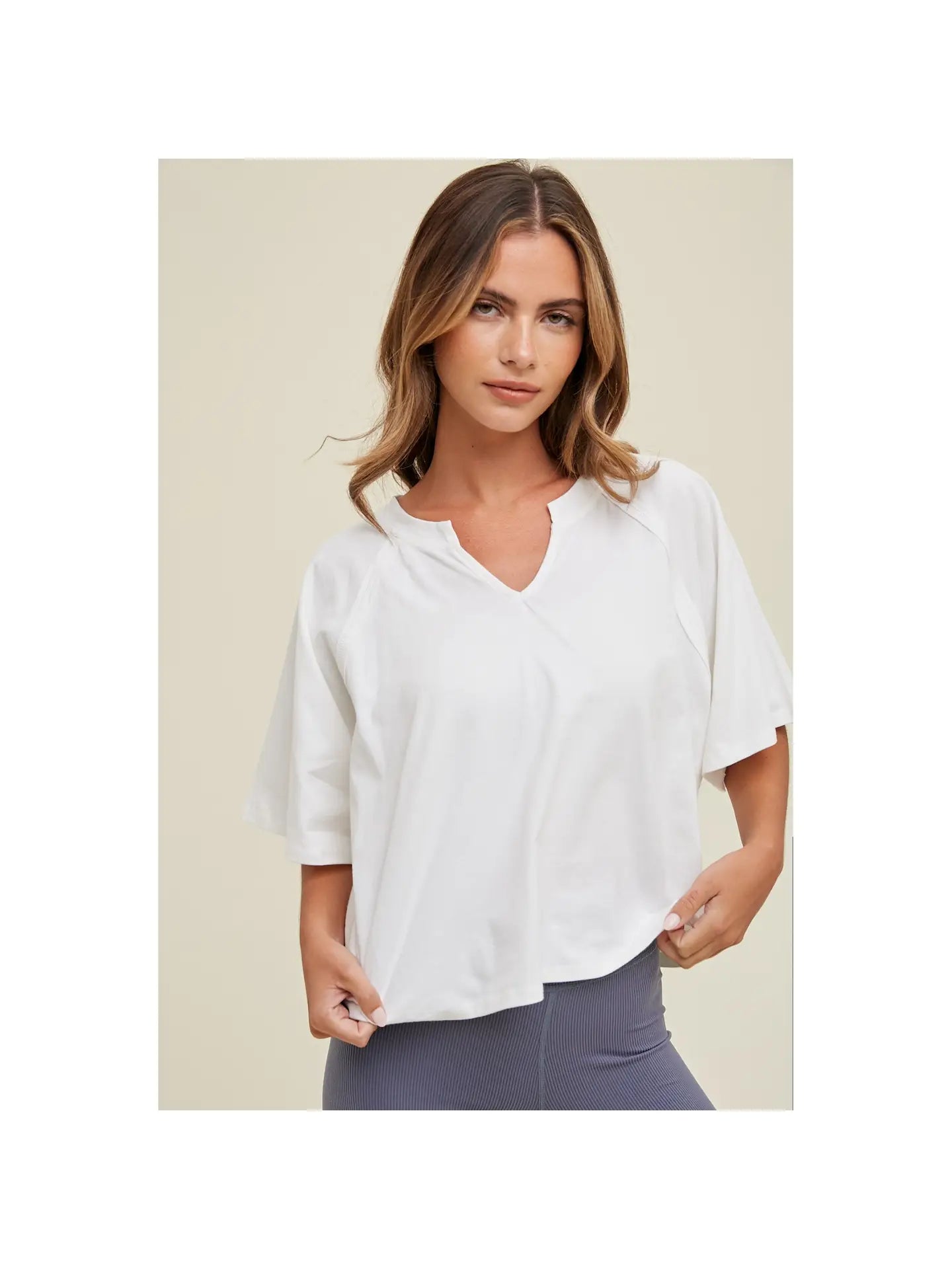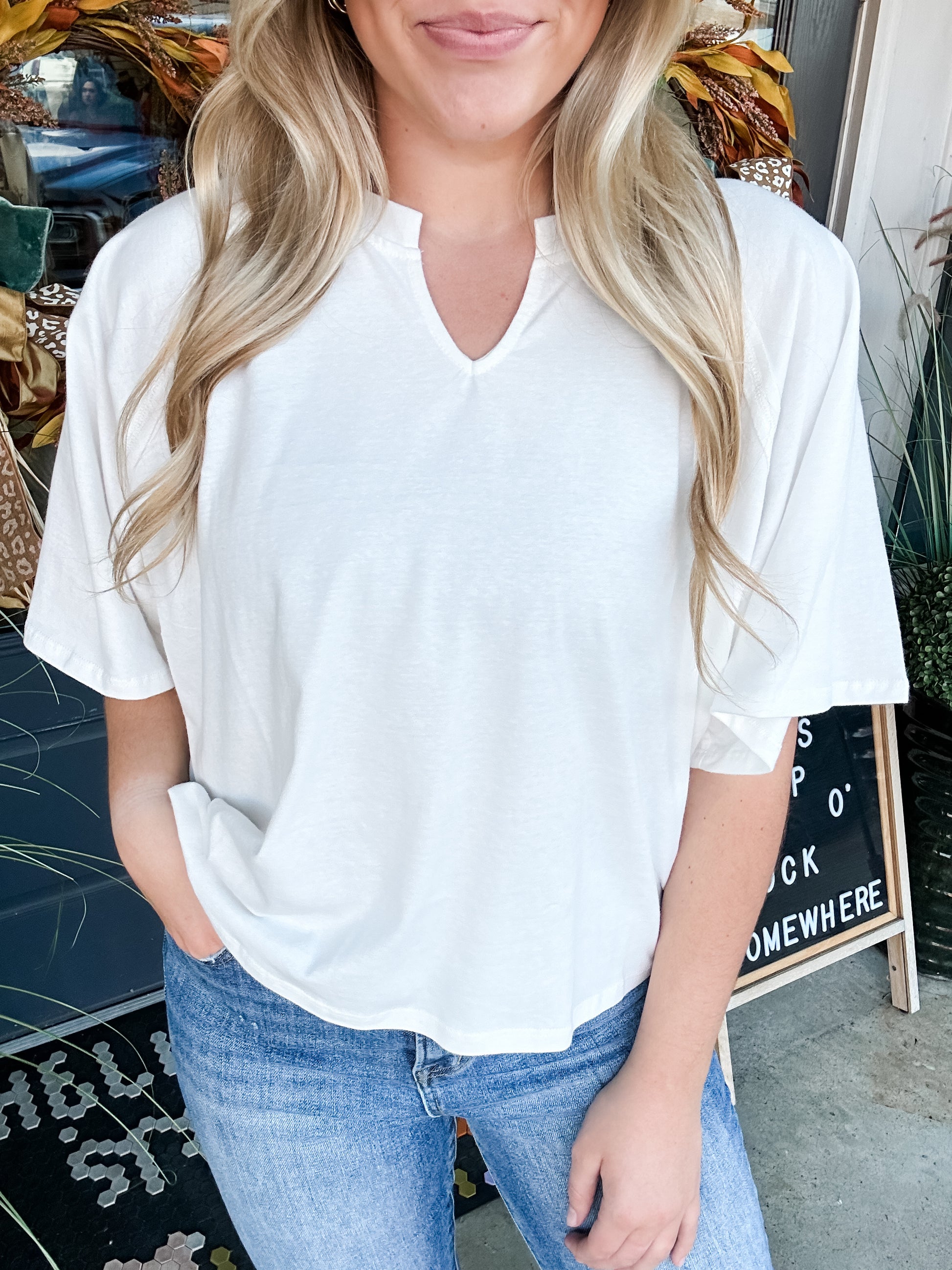 The I Can See Clearly Top is a white COTTON KNIT TOP WITH DROP SHOULDERs, NOTCH DETAIL at collar, and a RELAXED FIT that's COMFORTABLE and CASUAL. Grab it while you are seeing clearly that this is the ONE.