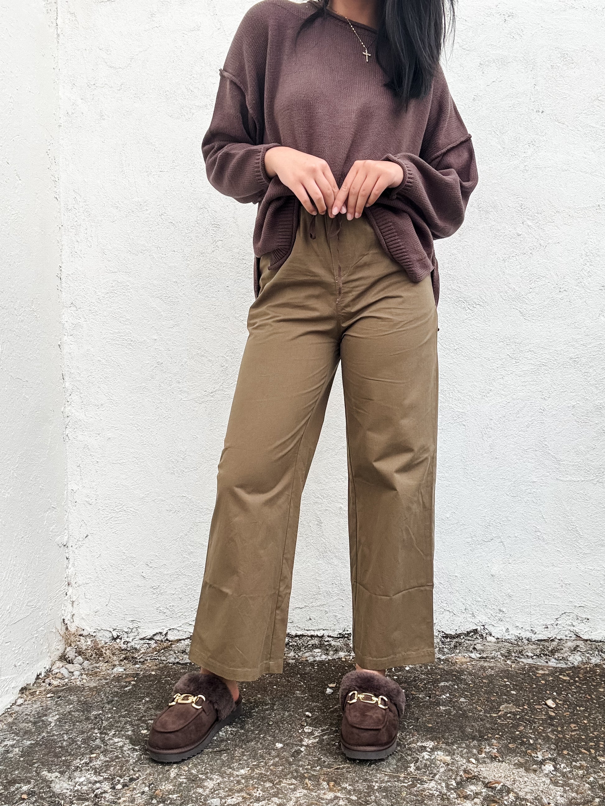 Stay comfortable and stylish in the In The Army Pants. Featuring an elastic waist with a functional drawstring and a contrasting brown waistband, these olive wide-leg pants offer a perfect blend of relaxed fit and modern design. Ideal for everyday wear, they provide ease of movement without compromising on fashion.
