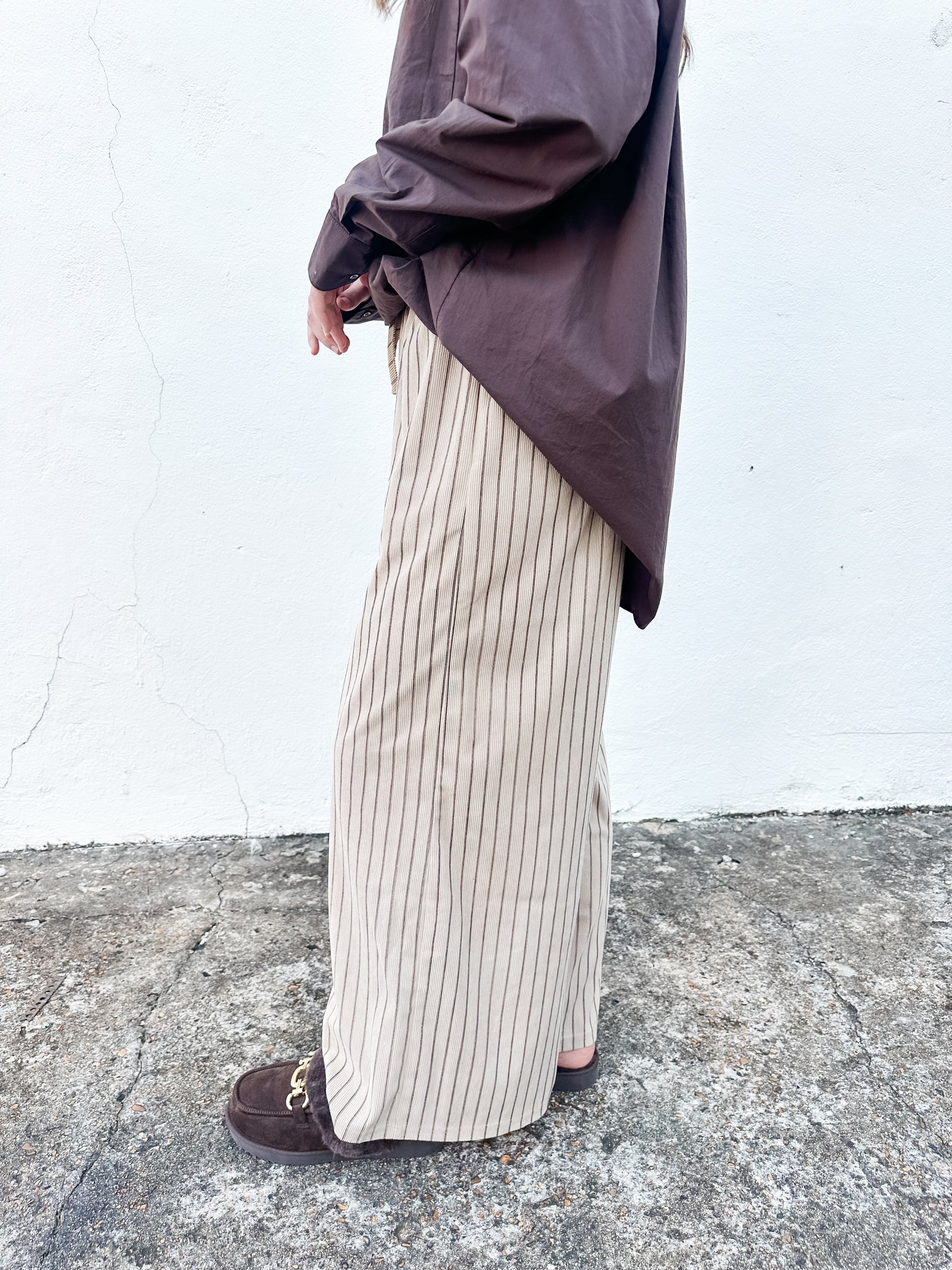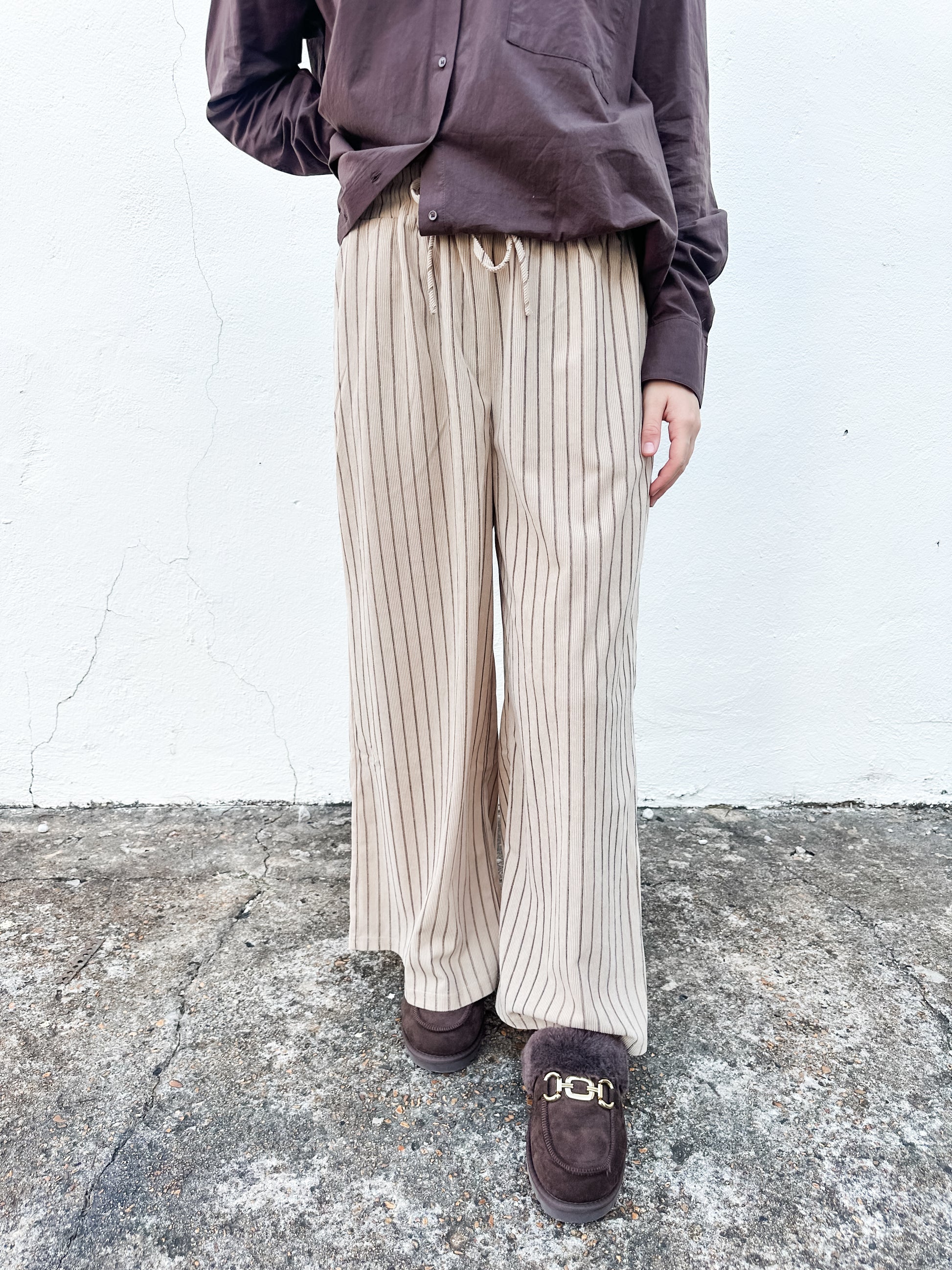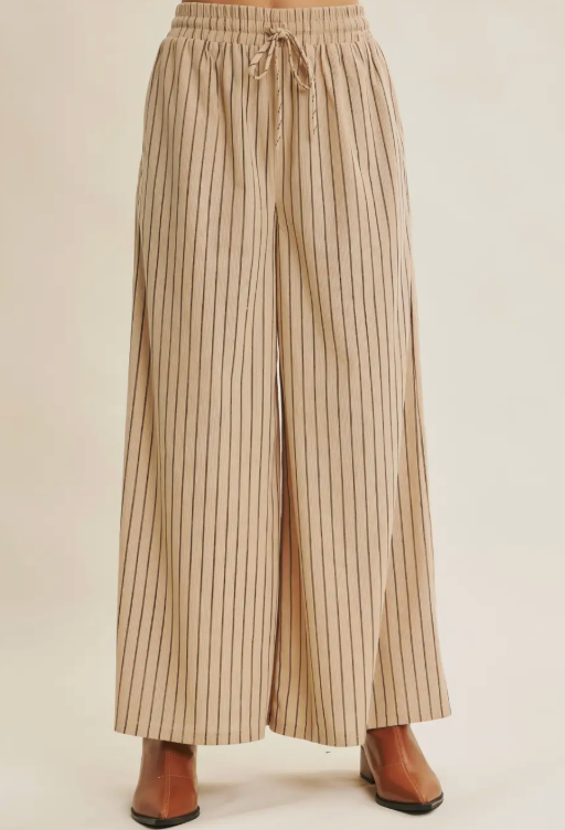 Effortlessly stylish and supremely comfortable, the Living The Good Life Pants are perfect for transitional weather. Crafted from soft striped corduroy, these wide-leg pants offer a cozy yet polished look. Their stretchy waistband with drawstrings provides a flexible fit, while deep side pockets add practical convenience. Pair them easily with knits, button-downs, or tees for versatile outfits that transition from casual outings to office hours. Available in two timeless shades, these pants combine comfort and structure for everyday wear you’ll reach for again and again.