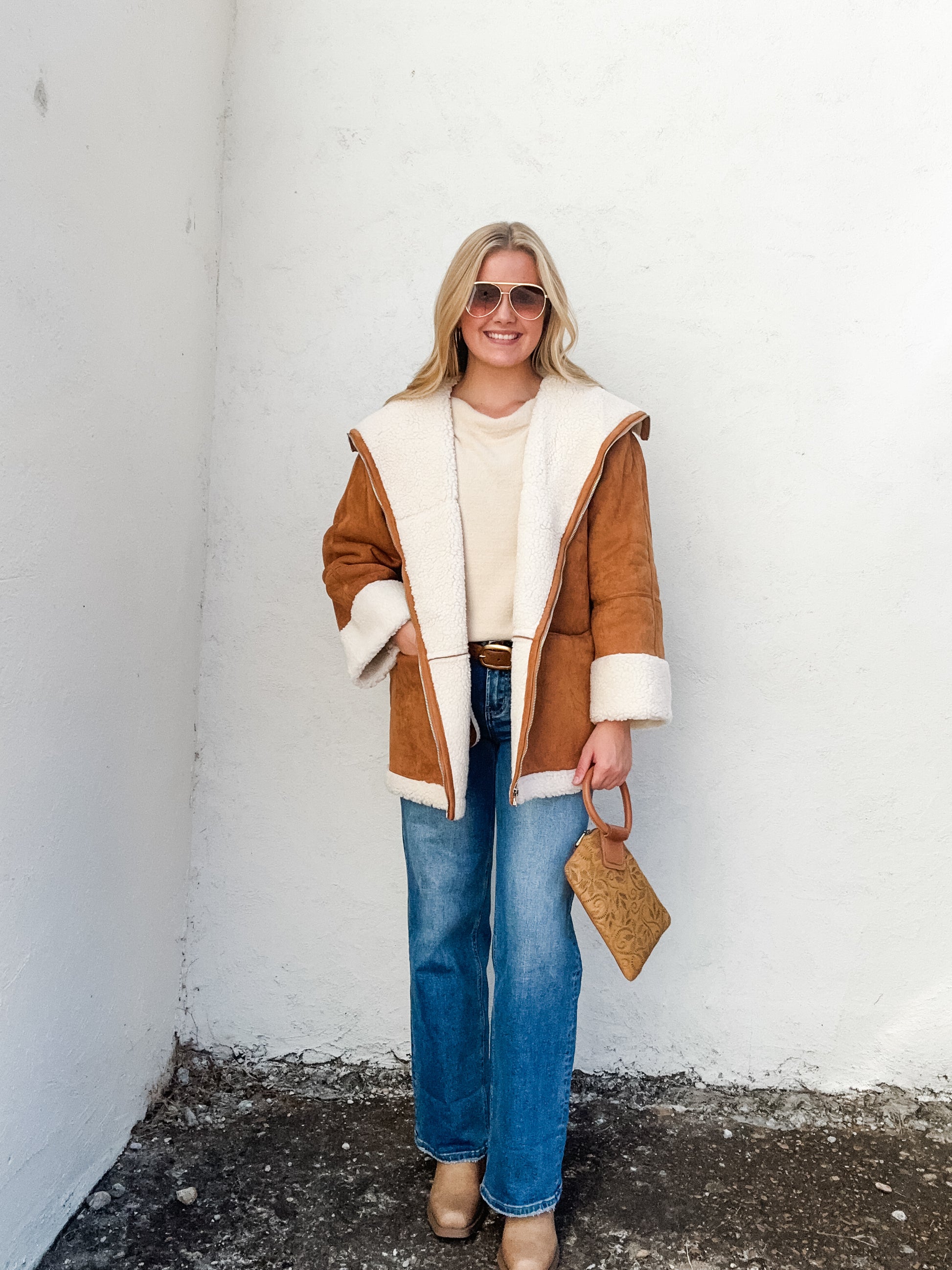 This camel-colored Outdoor Play Coat combines style and practicality with its luxurious suede texture and cozy faux fur trim. Featuring a shawl neckline and a zip-up open front, it effortlessly blends comfort and sophistication. The bold contrast pattern adds a modern edge, while the fully lined interior ensures warmth during chilly days. Perfect as a versatile outerwear jacket, it’s designed to keep you comfortable and looking sharp wherever your adventures take you.