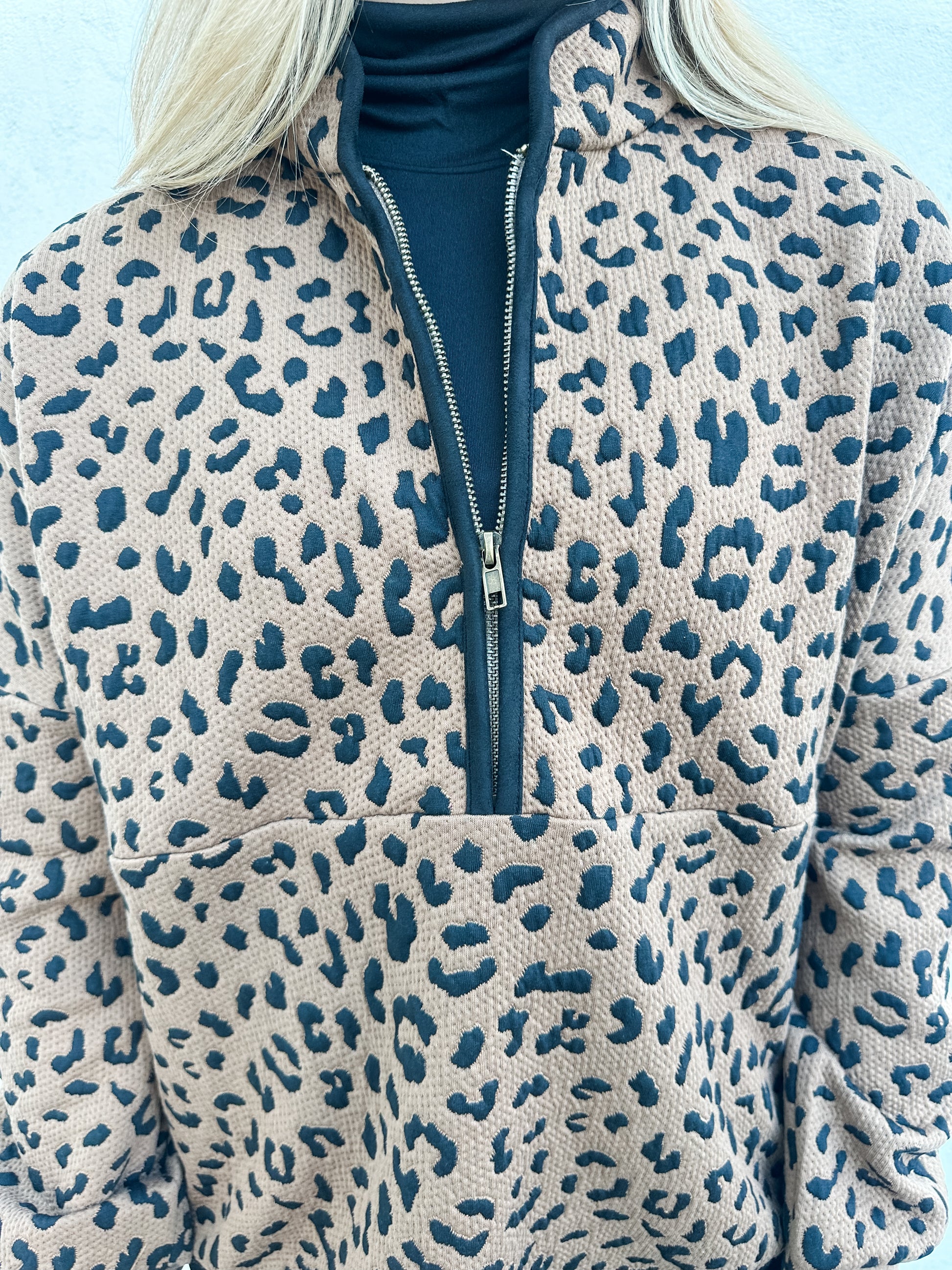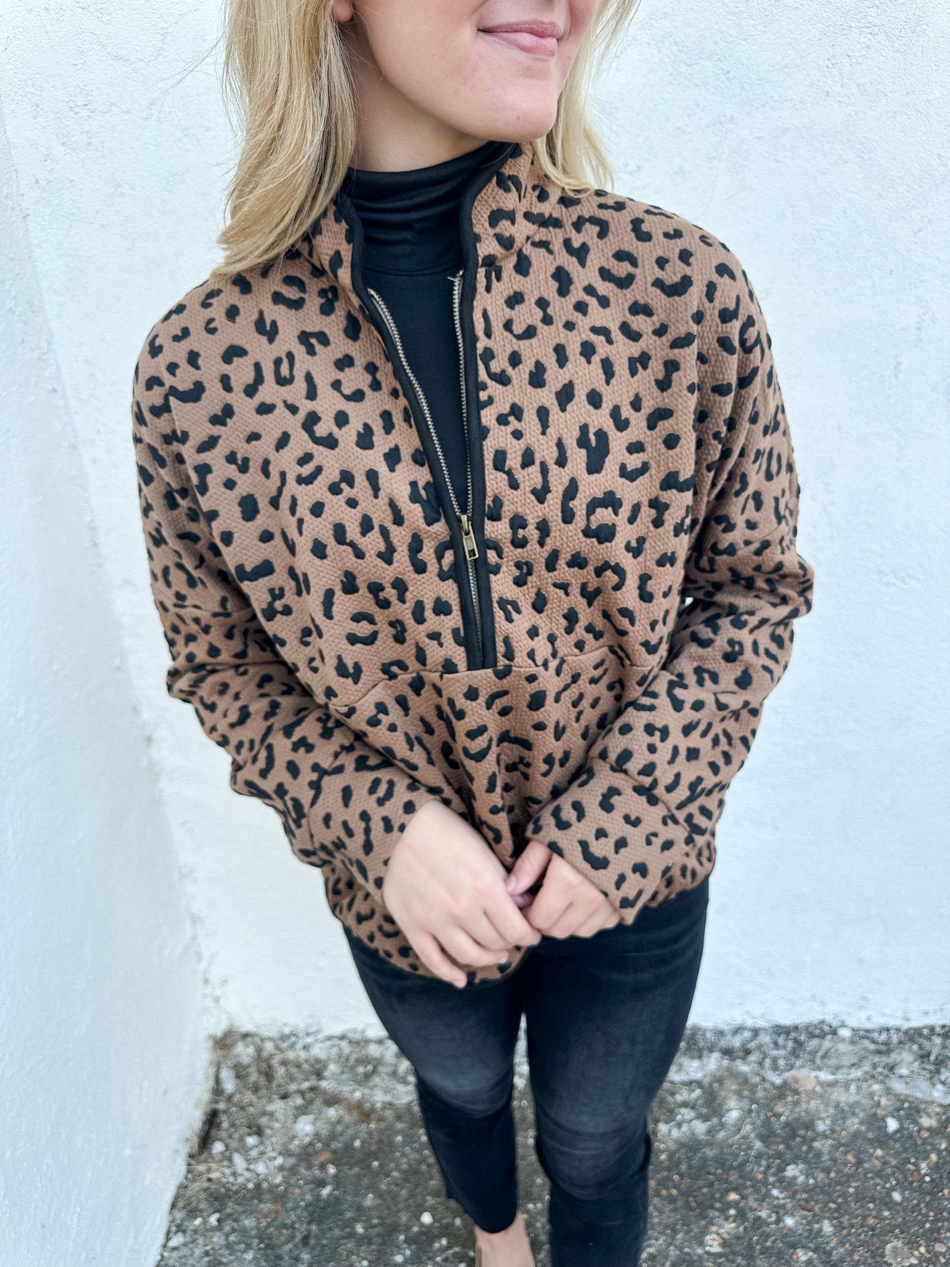 Stay stylish and comfortable in the Roar Ready Pullover, featuring a bold cheetah print with sleek black trim for a modern edge. The quarter-zip design lets you adjust ventilation effortlessly, making it perfect for layering on cool days. Crafted for an easy fit, this pullover combines wild style with everyday practicality, ready to keep up with your active lifestyle.