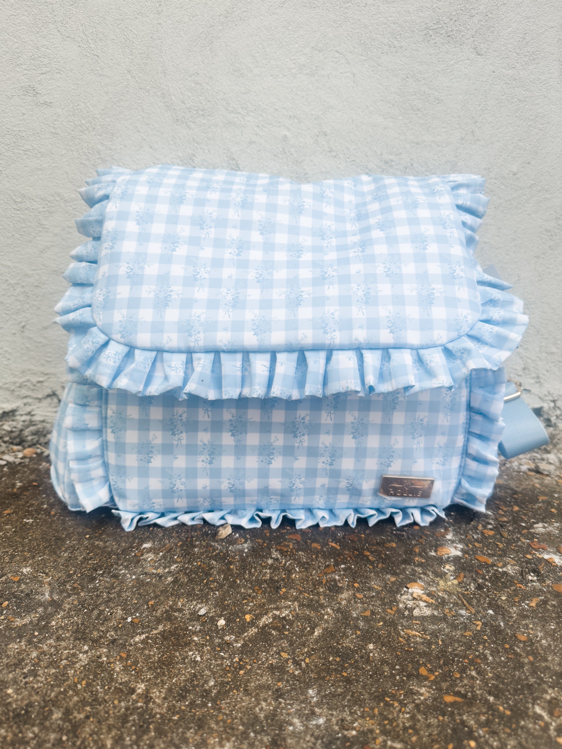 Say hello to the newly launched nylon diaper bag—designed by Courtney, HOLLIS’ founder and CEO, after years of perfecting the ideal diaper bag. Combining style, practicality, and durability, this bag is the ultimate solution for modern parents on the go. Crafted from wipeable, stain-resistant nylon, it offers a trendy yet timeless design, with cute ruffled detailing throughout for that extra touch of charm. This diaper bag has a place for everything, with multiple storage compartments inside and out, ensuring that all your baby’s essentials are organized and easily accessible. The back compartment holds a water-resistant changing pad, while the spacious interior provides plenty of room for blankets, clothes, and everything else your baby might need.