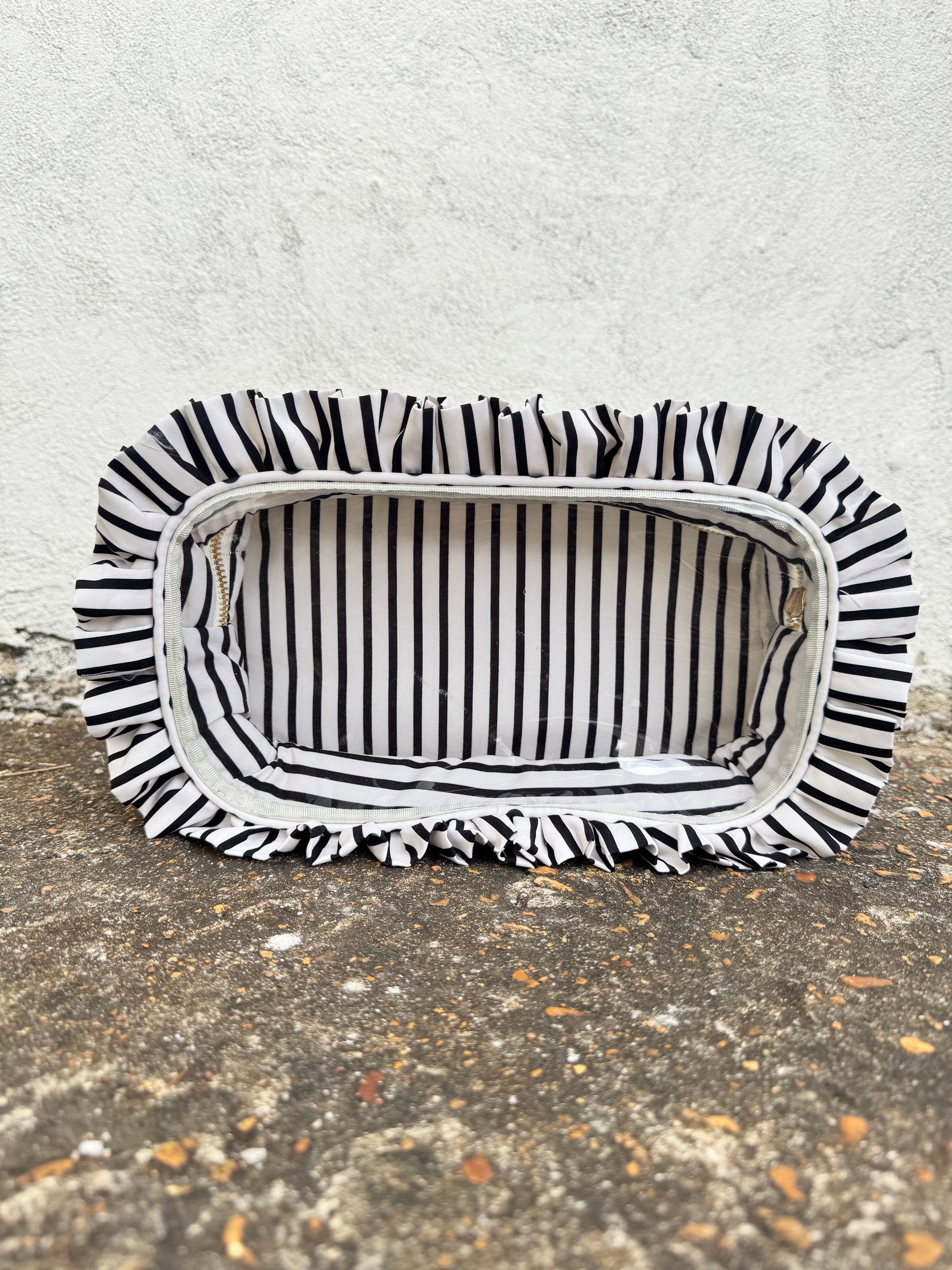 Ruffled Nylon Large Clear Pouch Polka