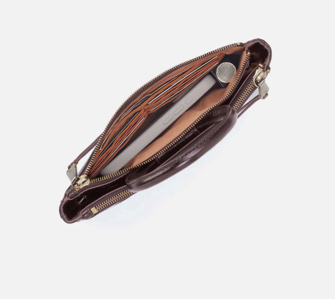 The Sable Crossbody in Hearthstone combines timeless style with everyday functionality. This versatile bag features a comfortable leather top handle and a removable crossbody strap—swap it out whenever inspiration strikes. Stay organized with dual zip compartments, a dedicated phone pocket, and interior card slots, all secured by a magnetic closure. Crafted with Old English brass hardware and lined in warm sandalwood, this 10.5" x 5.5" essential transitions seamlessly from day to night. Whether you carry it by hand or across your body, the Sable adapts to your lifestyle.
