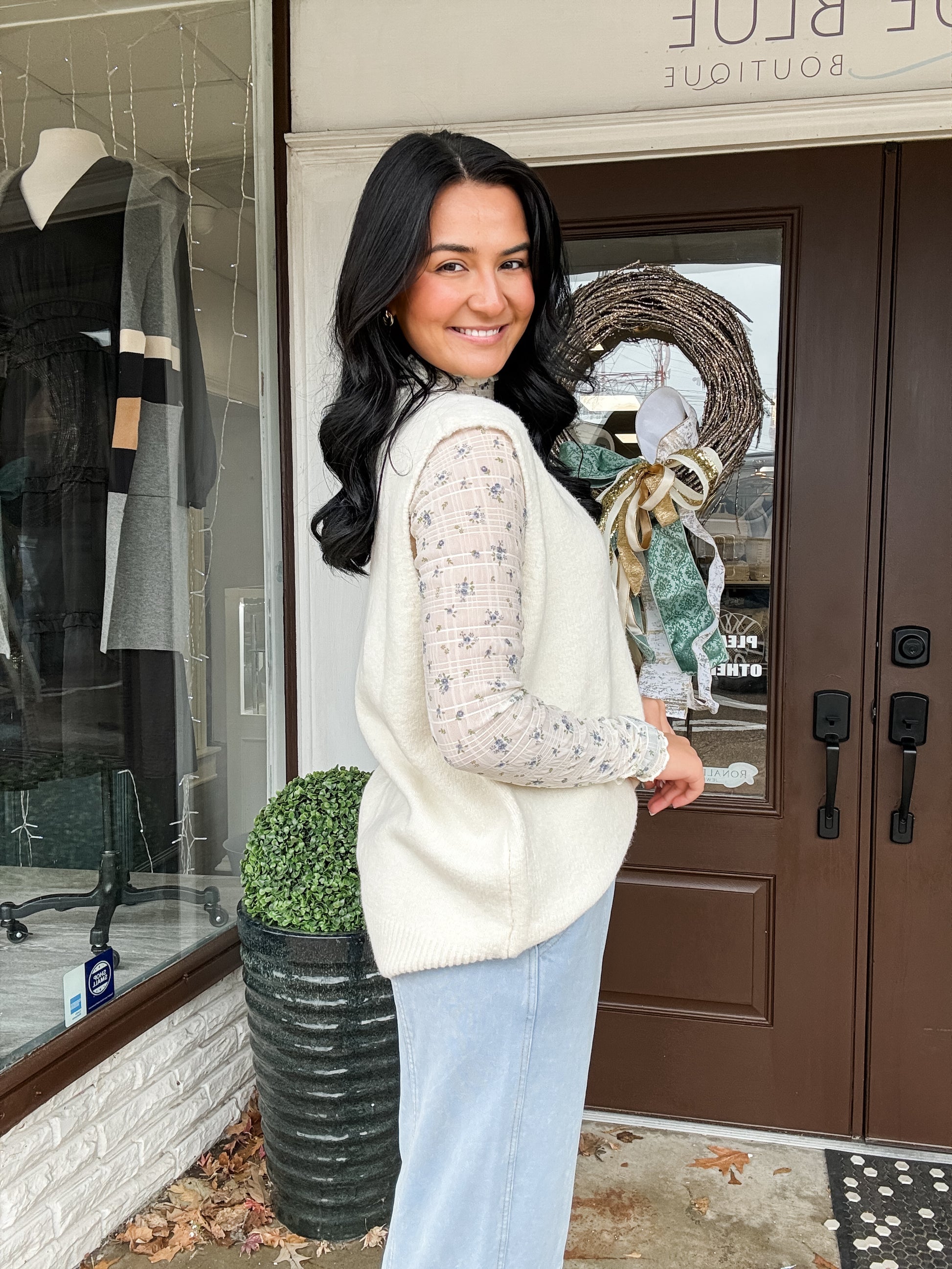 Embrace bold comfort with this ivory oversized sweater vest, designed to make a statement. Its soft, creamy hue pairs perfectly with the daring V-neckline and button closure, adding edgy sophistication to any outfit. Layer it boldly or wear solo to redefine cozy style with fearless flair.