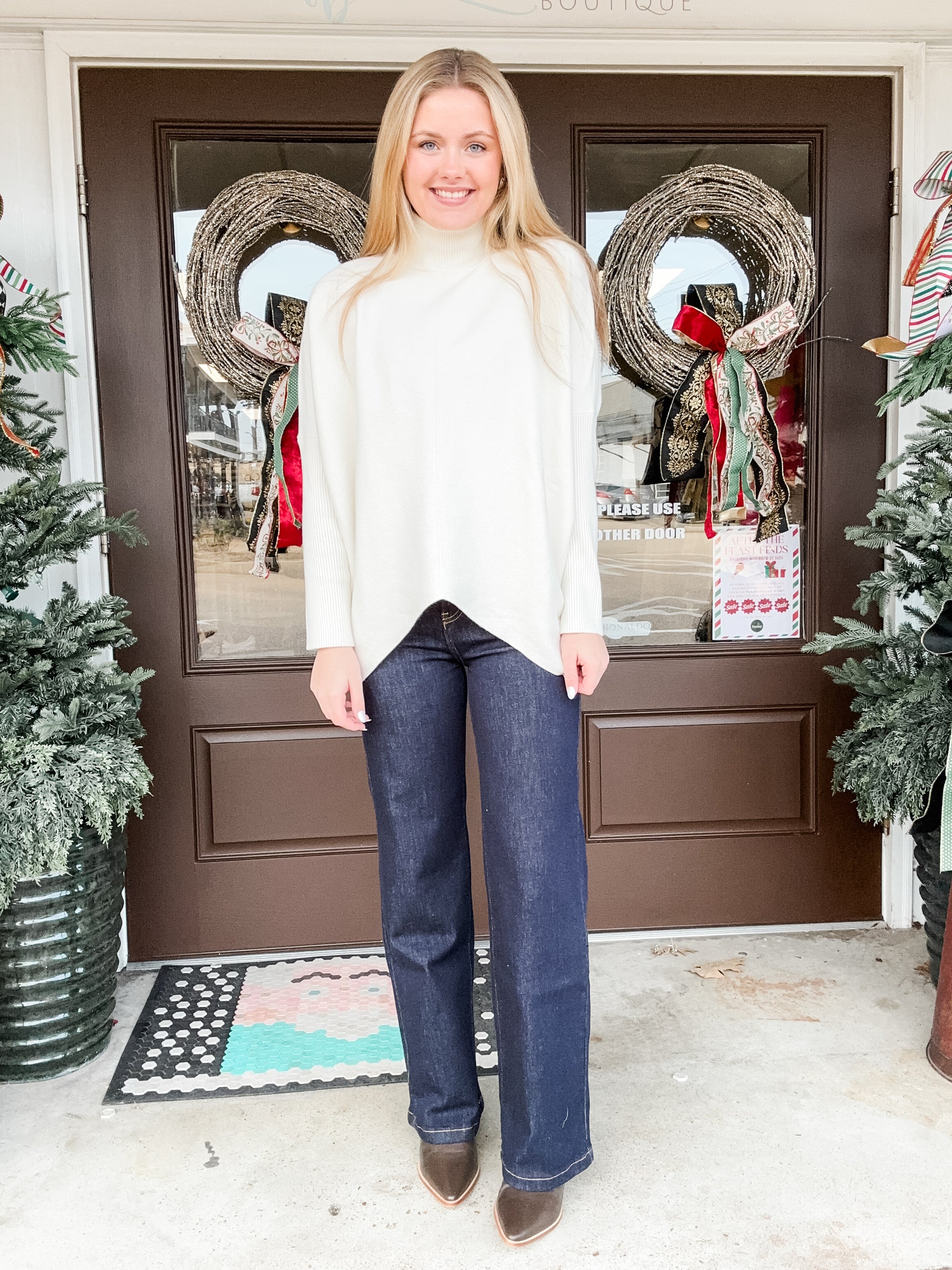 Indulge in luxurious comfort and chic style with our Sweet Cream Sweater. This ivory long sleeve high low sweater features a cozy turtleneck, perfect for keeping you warm on chilly days. Elevate your wardrobe with this essential piece that effortlessly combines fashion and function!