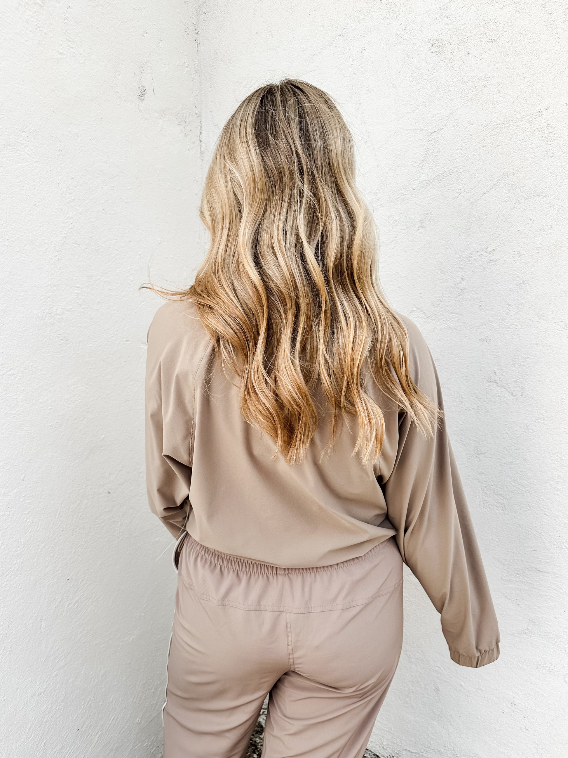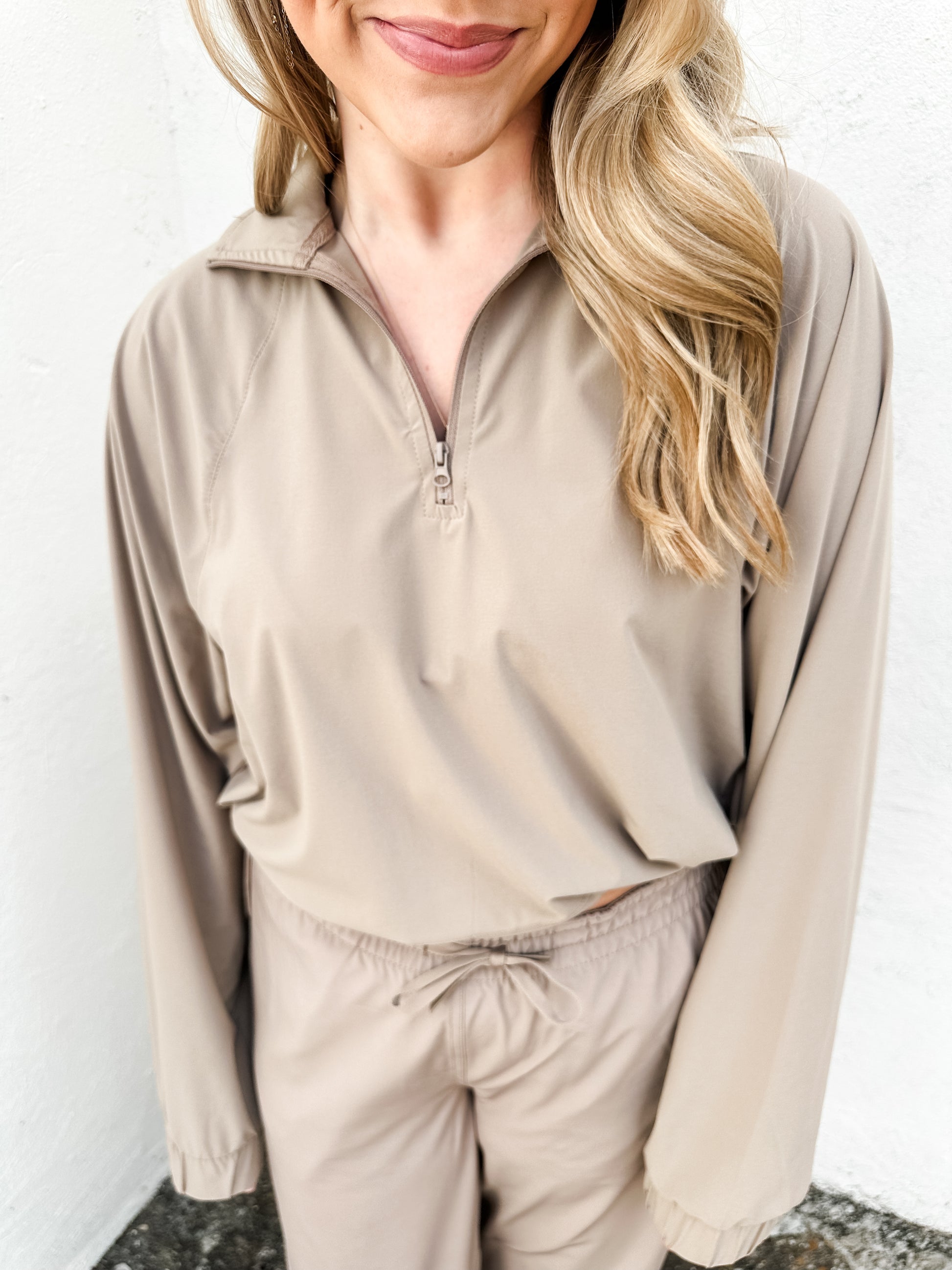 Elevate your everyday wardrobe with the Track Star Jacket—a modern pullover that seamlessly transitions from work to weekend. The half-zip front and structured fit deliver a polished aesthetic, while the premium 88% nylon and 12% spandex blend with four-way stretch ensures unrestricted movement and all-day comfort. In a sophisticated mocha tone, this versatile piece pairs perfectly with our Track Star Pants to create a coordinated, put-together ensemble. Whether you're layering for warmth or wearing solo, this jacket combines style with functionality for the contemporary lifestyle.